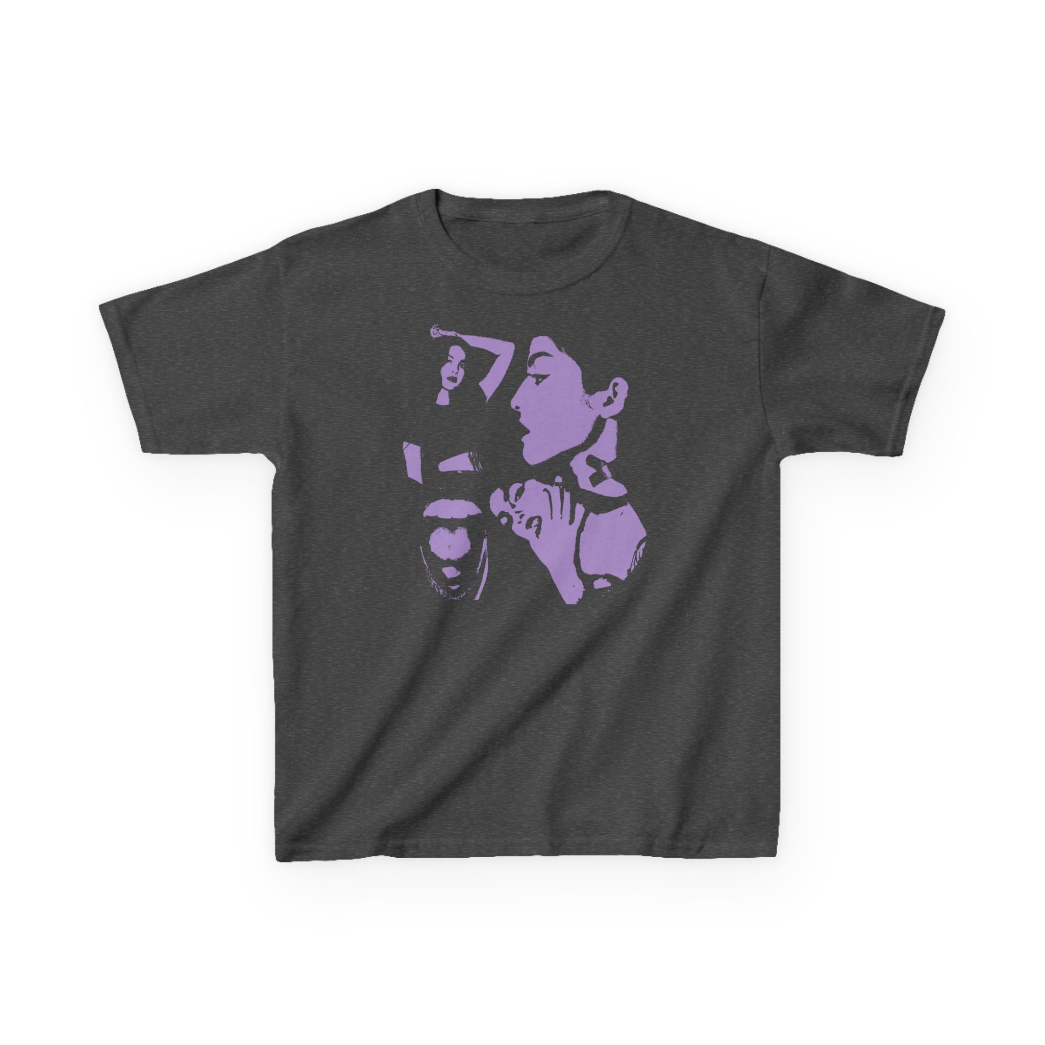 The GUTS Collage Crop Top is a youth shirt that fits like a cropped tee on adults. Please size directly from youth to adult for best fit.